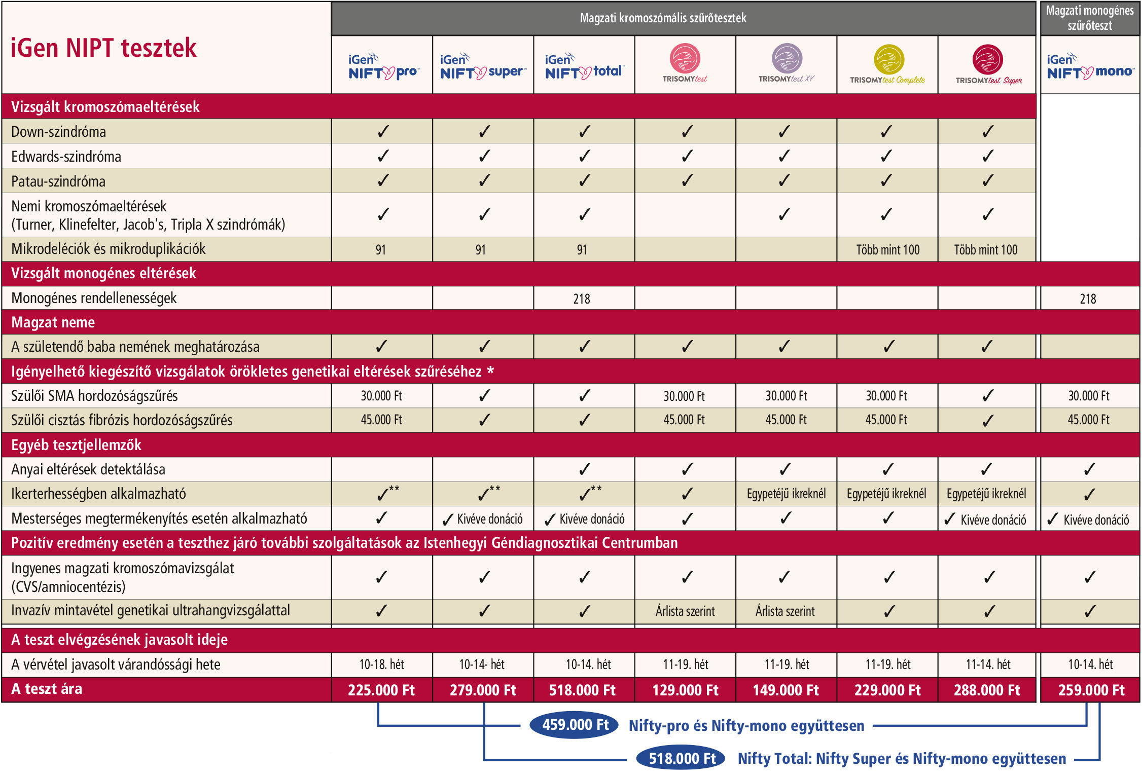 | Mintavétel genetikai ultrahangvizsgálattal | ✔ | ✔ | ✔ | árlista szerint | árlista szerint | ✔ | ✔ | ✔ | |